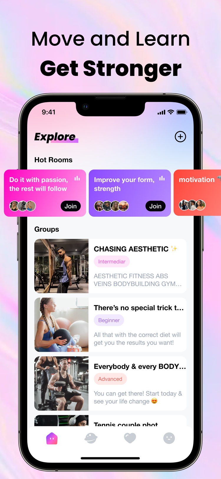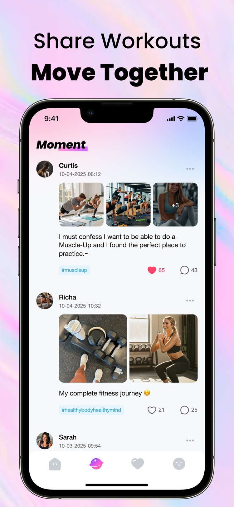 Join workout groups, share your progress, or go live to inspire others in real-time.